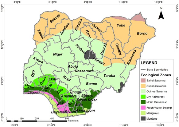 Geotalon Sustainability has initiated Nigerian forest carbon offsets project to ensure the high-density vegetation Forest regions of the country are well preserved and afforested to serve as carbon sinks, boost biodiversity and enhance water cycle especially in the Niger Delta region where hydrocarbon exploration and production resulted in high Green Gas Emissions (GHG). However, although the Nigerian forest cover is approximately 7.7% of its land area and extends to 75,707 km2 with diverse forest ecosystems, significant segment of the forests has been salvaged through deforestation (Figure 1) thereby turning rainforest regions into Savannah Land.