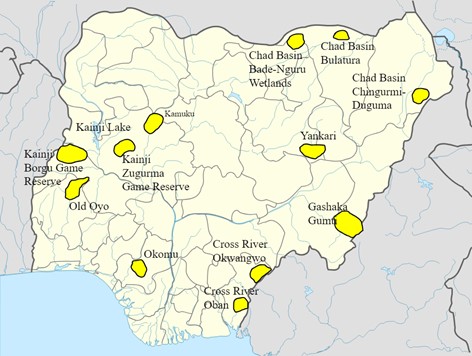 Figure 2 Nigerian Major Forest Game Reserves aimed for Geotalon Sustainability through Afforestation Initiative to achieve Forest Carbon Offset Goals